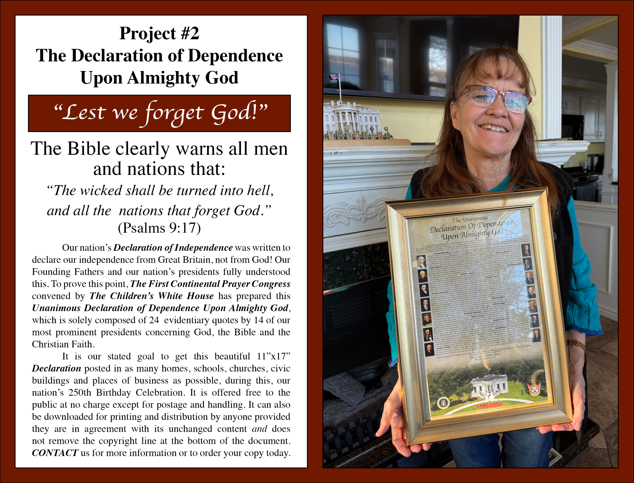 The Children’s White House was conceived in the Spirit and dedicated to the proposition that: “The faith that built America can also save America!”
